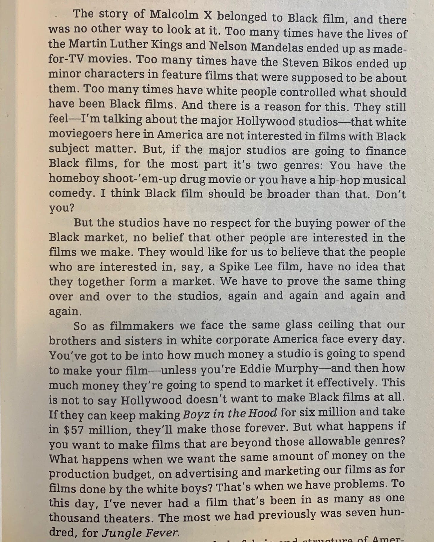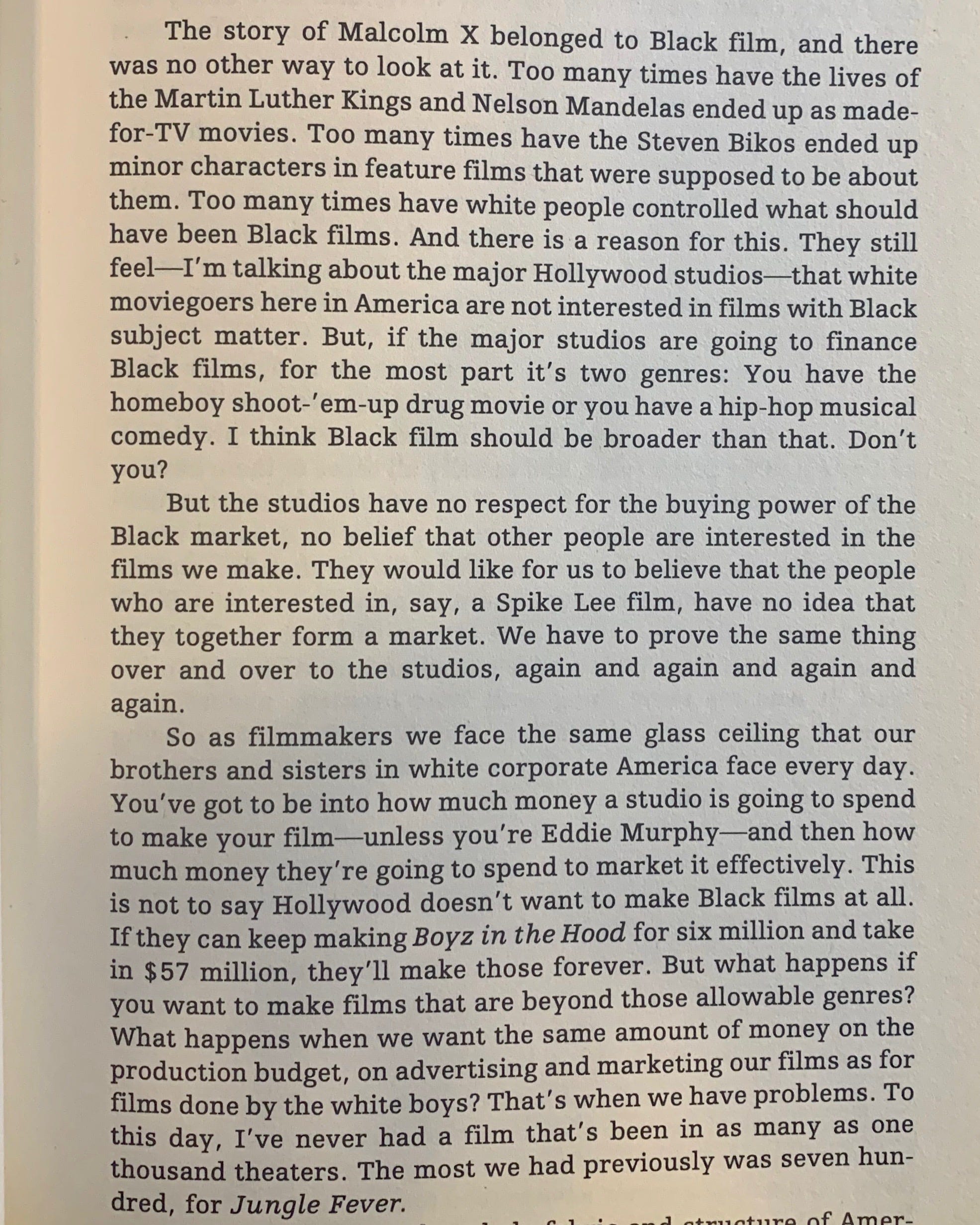 "If newspapers or magazines can't find a black writer to write about 'Malcolm X,' then what's the point? Don't tell me black writers don't have more insight about Malcolm than white writers.”