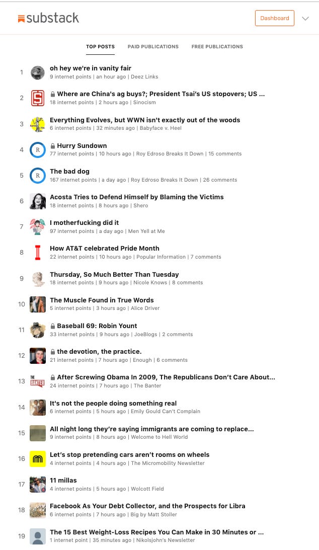 Remember: People can be really hard on themselves. For not being perfect. For not having a ton of cash or time to put towards a passion project. For me, I was hard on myself for not being mentioned when friends talked about their favorite podcast or newsletters. For not promoting enough. Hell, I was hard on myself when I messed up editing podcasts. I PROMISE I was super hard on myself for never seeing my name on this damn list:
